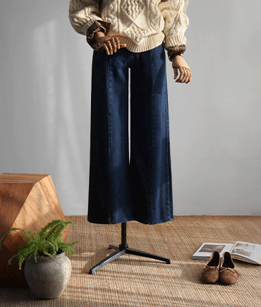 [프론트 절개 디테일로 -3kg 효과를 만들어주는 데님 팬츠]