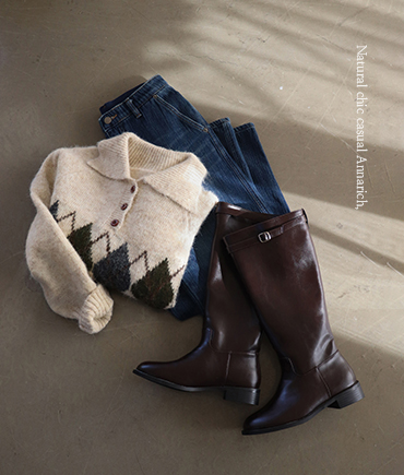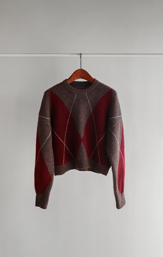 세련된 색감과 아가일 패턴의 세미크롭 니트