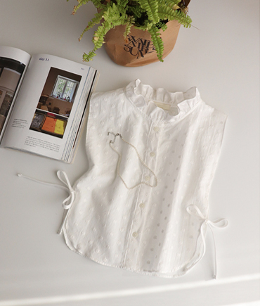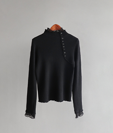 [여성스러운 무드가 돋보이는 물결라인 프릴 넥]