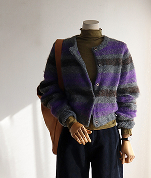[알파카 소재 특유의 헤어리함이 매력적인 가디건]
