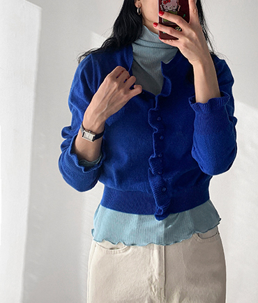 [여성스러운 무드가 돋보이는 물결라인 프릴 넥]