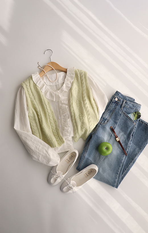 [하나만 입어도 예쁜 코디가 연출되는 블라우스&슬리브리스SET]