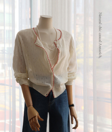 [여리한 브이넥 라인부터 내려오는 버튼 디테일