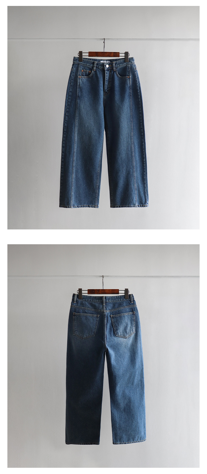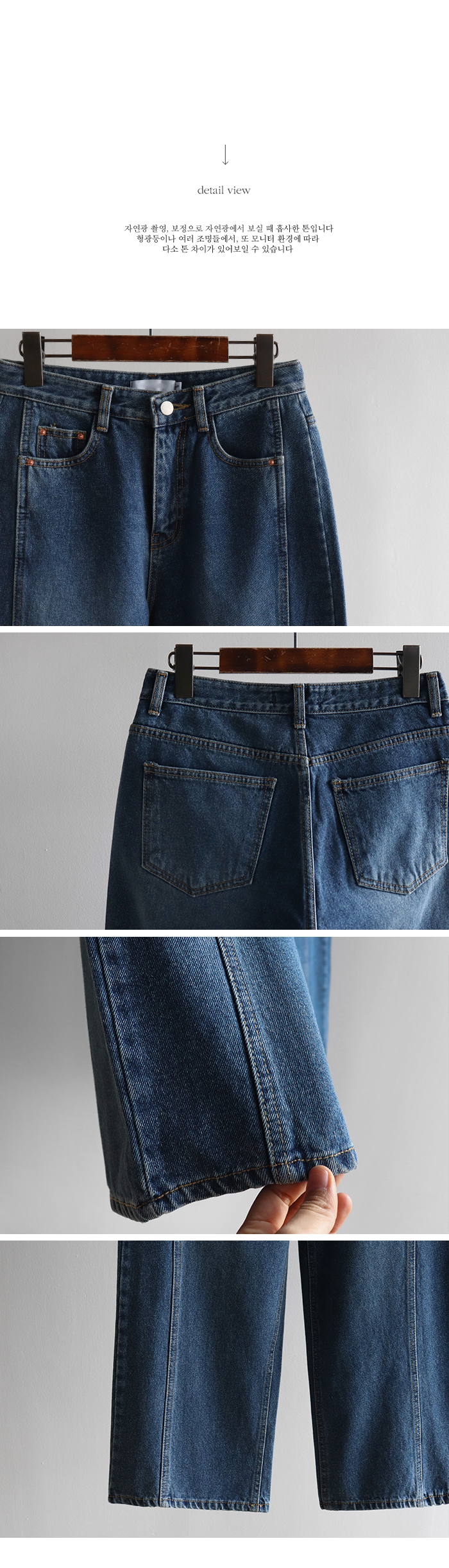 세련된 아웃핏이 돋보이는 데님팬츠,