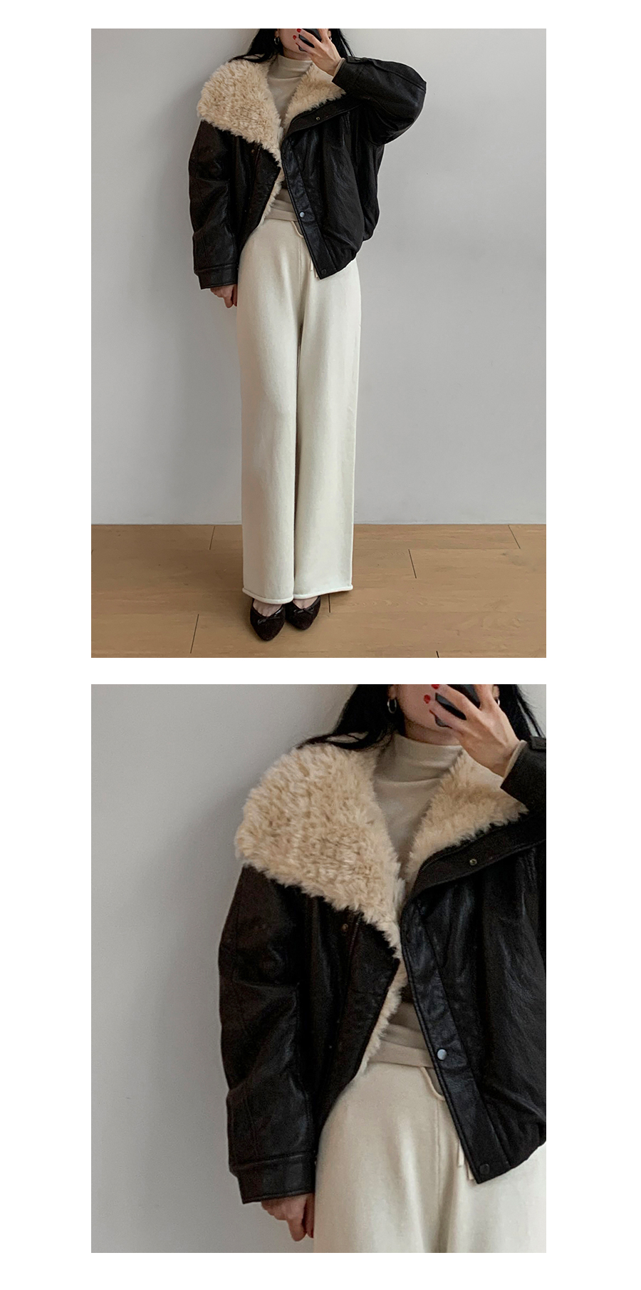 올려서 연출해 주면 따듯한 하이넥이 연출 돼