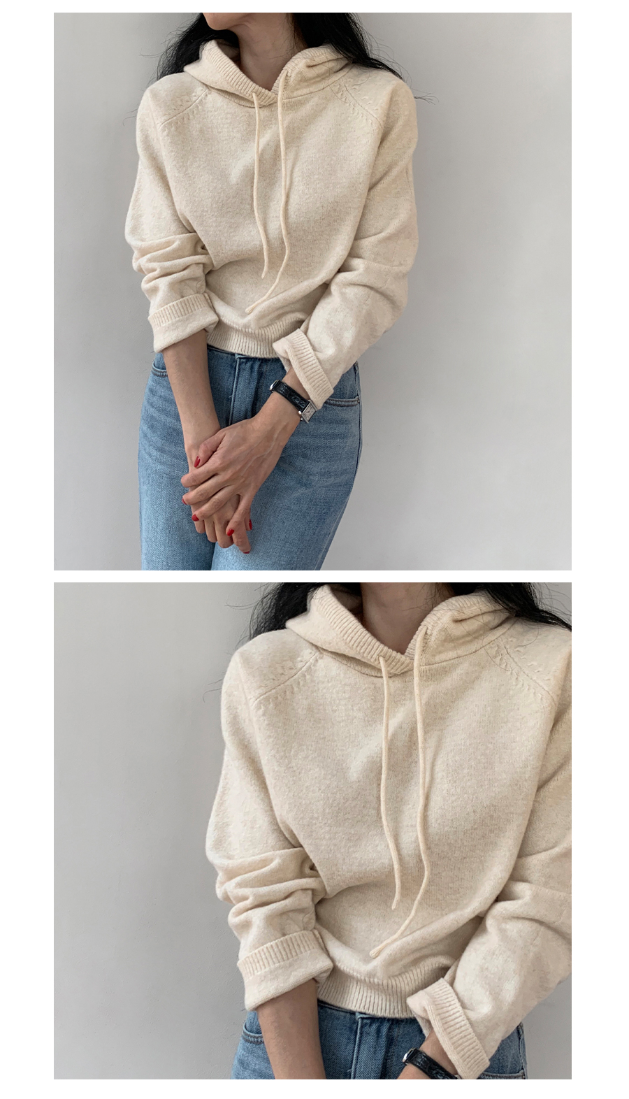 더욱 부드럽고 포근하게 착용되는 후드 니트에요