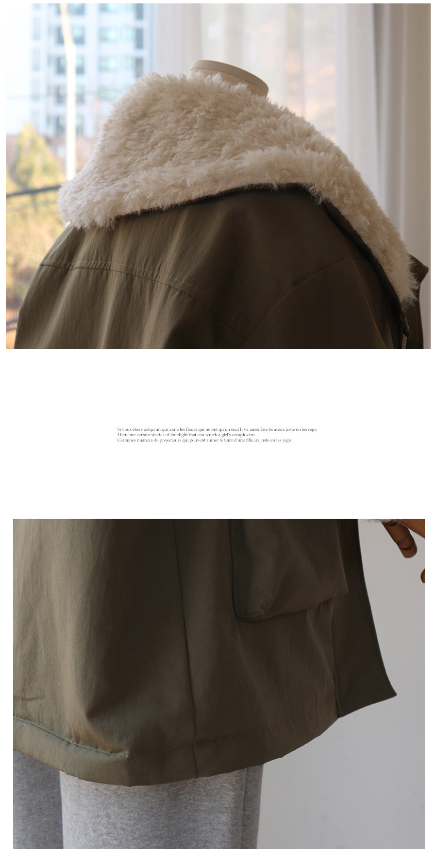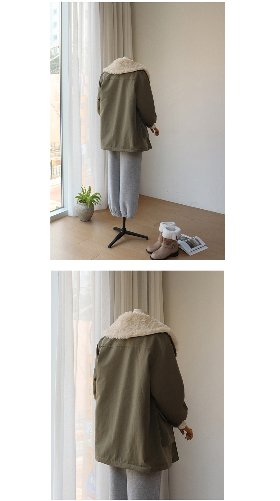 한겨울까지 든든하게 입기 좋은 퍼 안감 야상 점퍼예요~