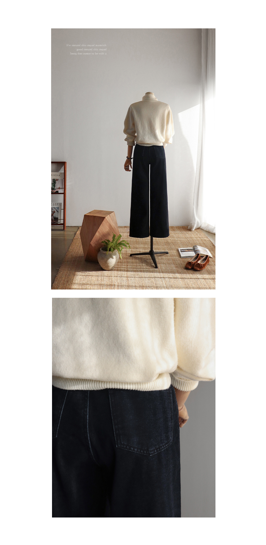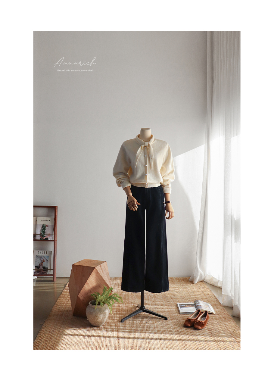 와이드한 핏의 앞 절개 라인이 돋보이는