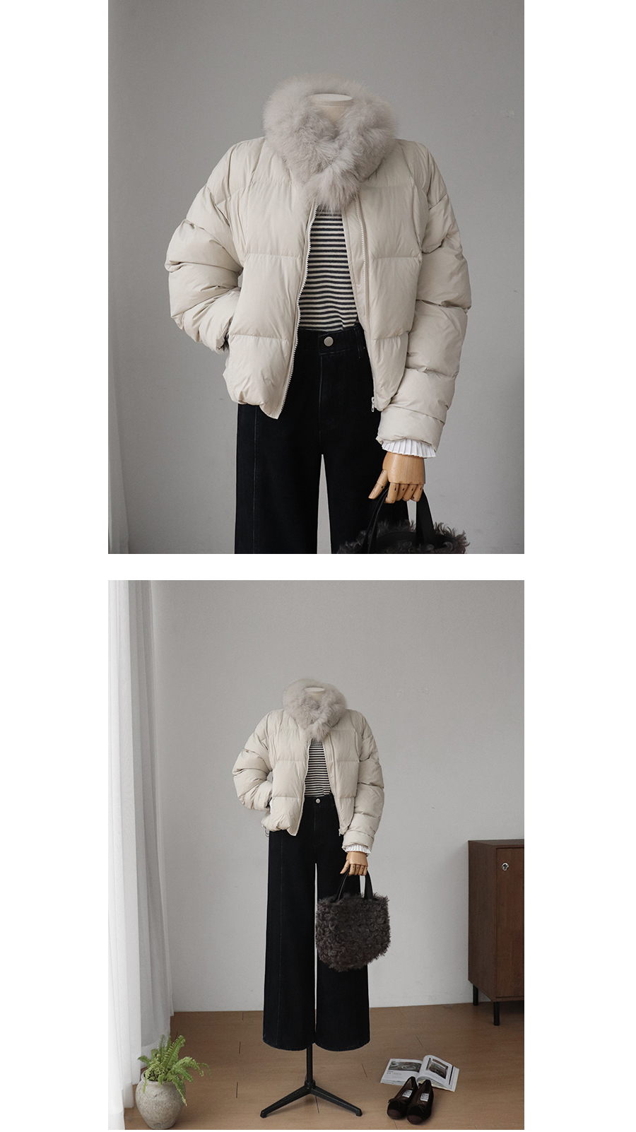벨벳기모 안감을 사용해 한겨울 추위에도