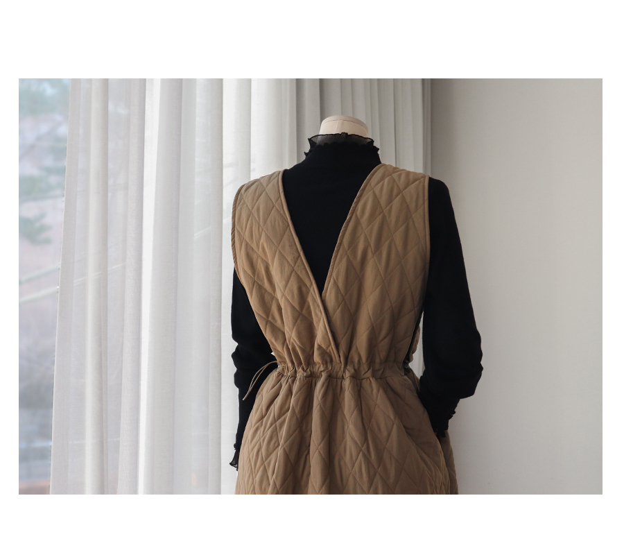사선으로 표현 된 넥라인 버튼 디테일도