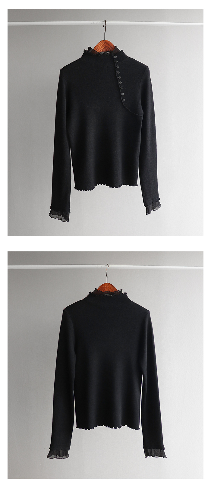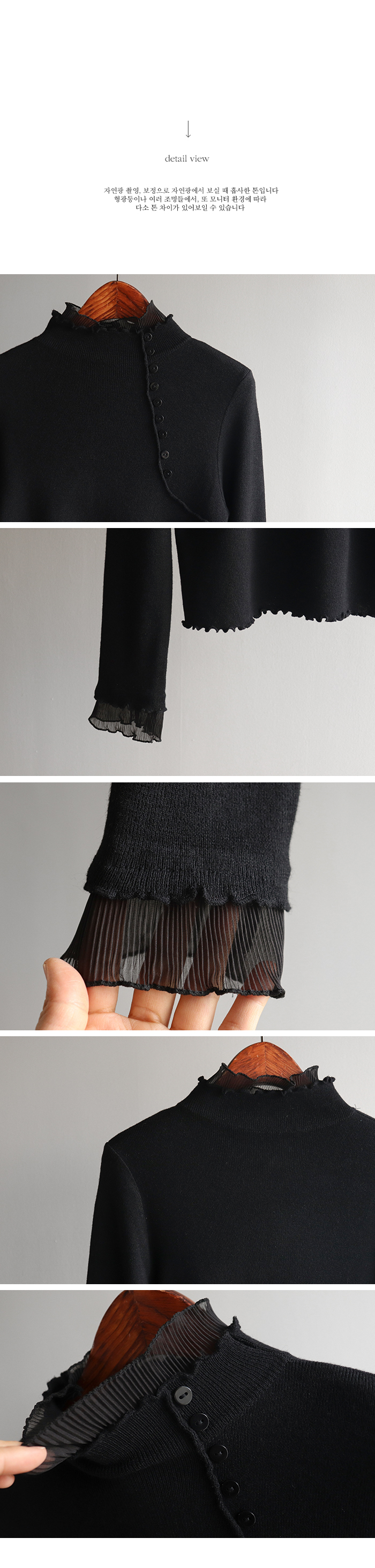 넥과 소맷단 시스루 프릴 레이어드 디테일로