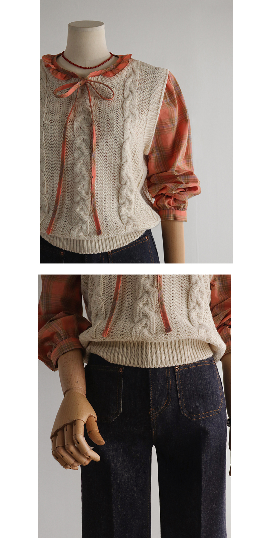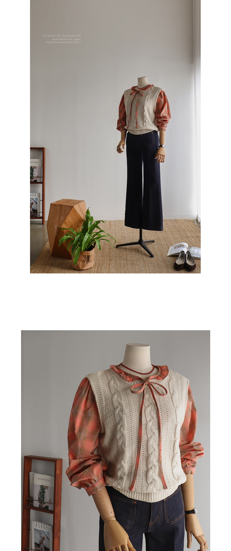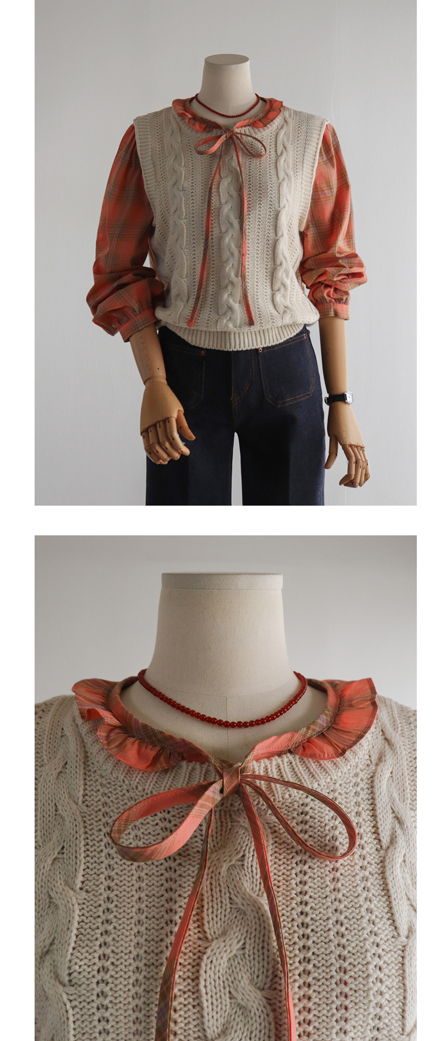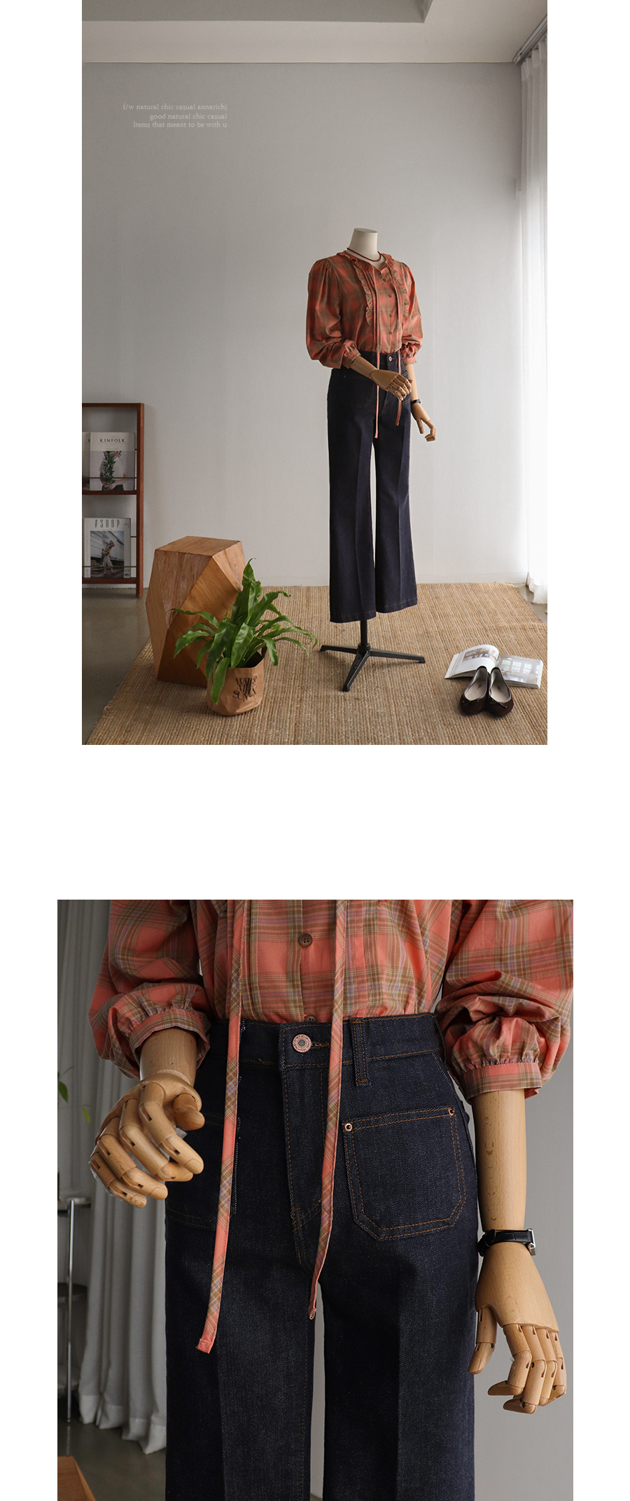 코지한 체크 패턴 디테일로