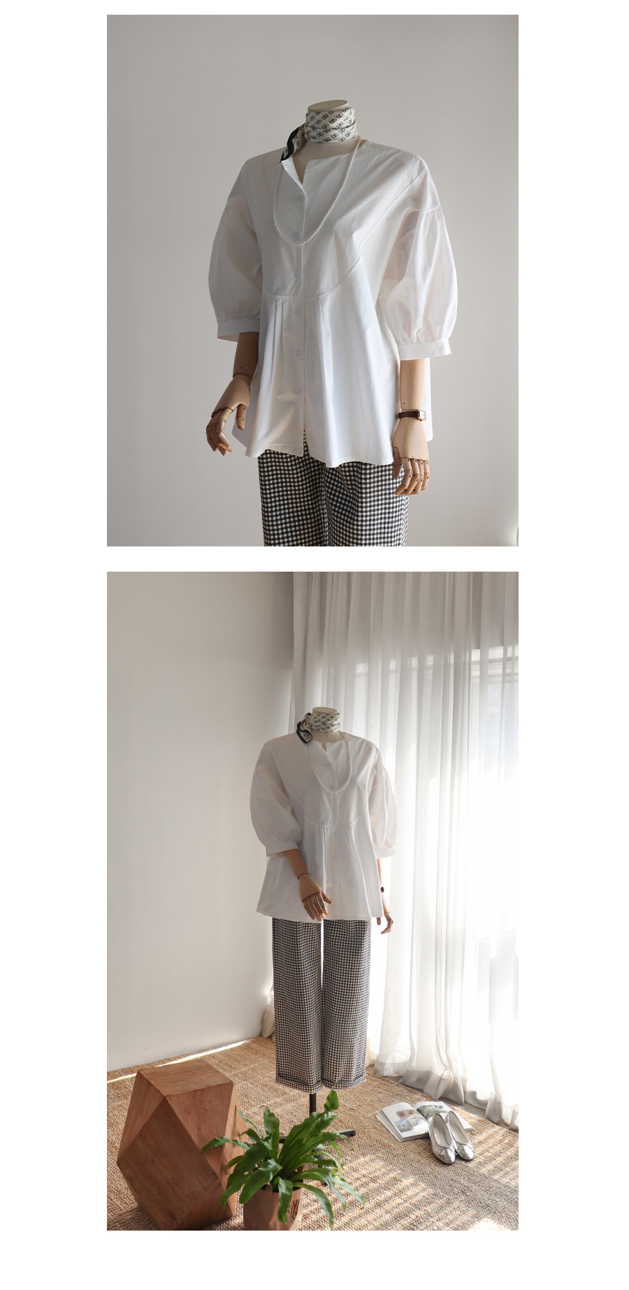 여성스러운 무드가 느껴지는 블라우스에요
