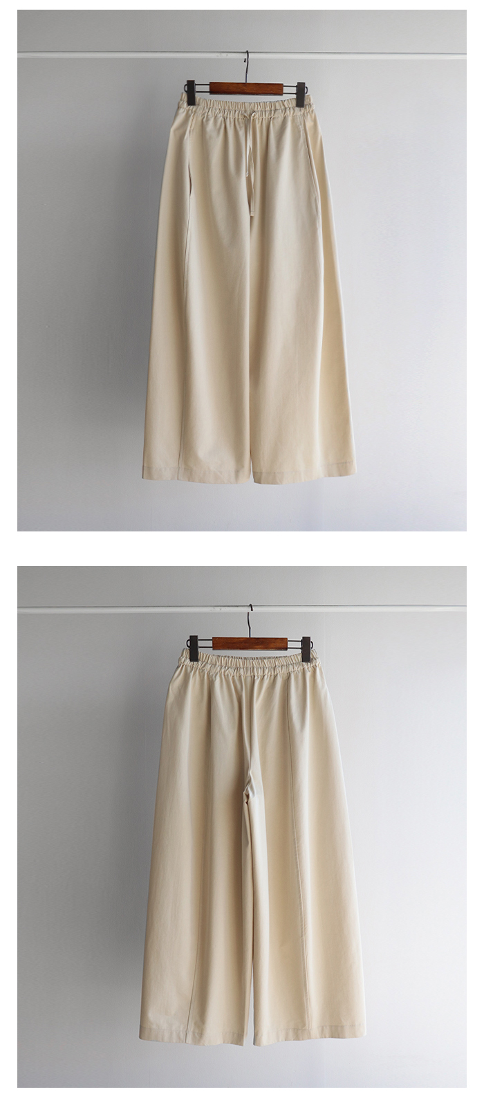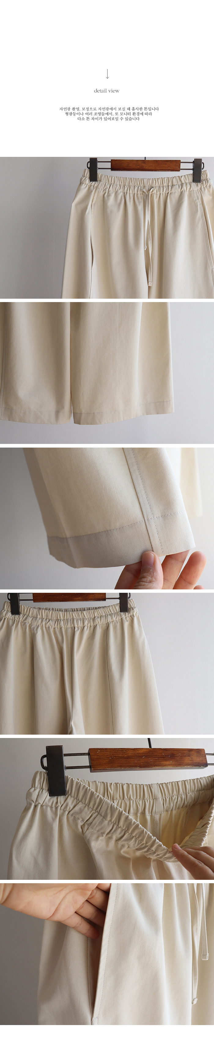 두께(보통), 신축성(허리전체밴딩), 안감(없음), 비침(없음), 촉감(좋음)