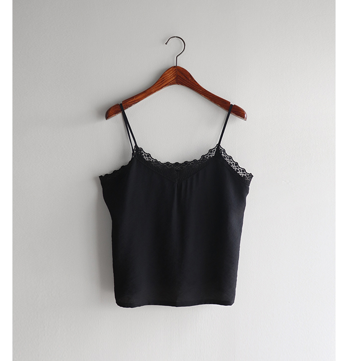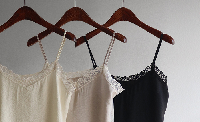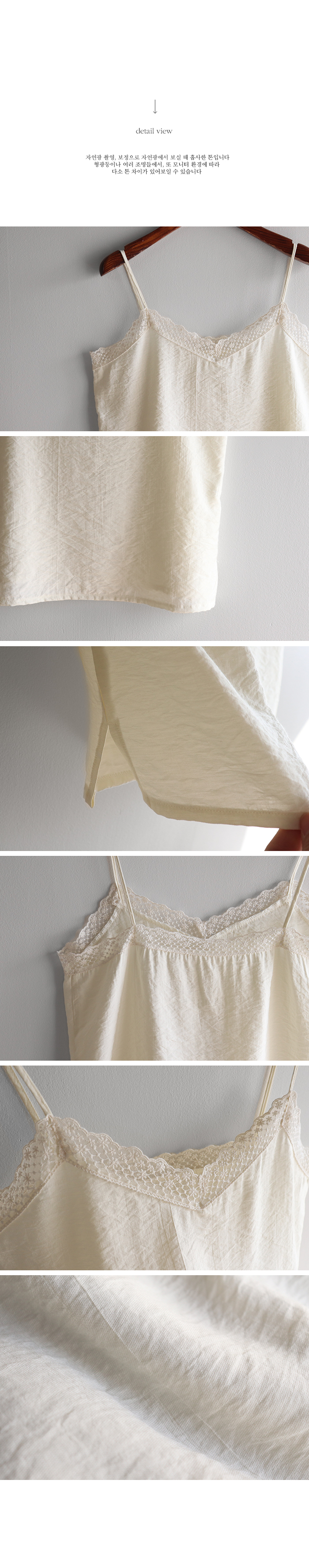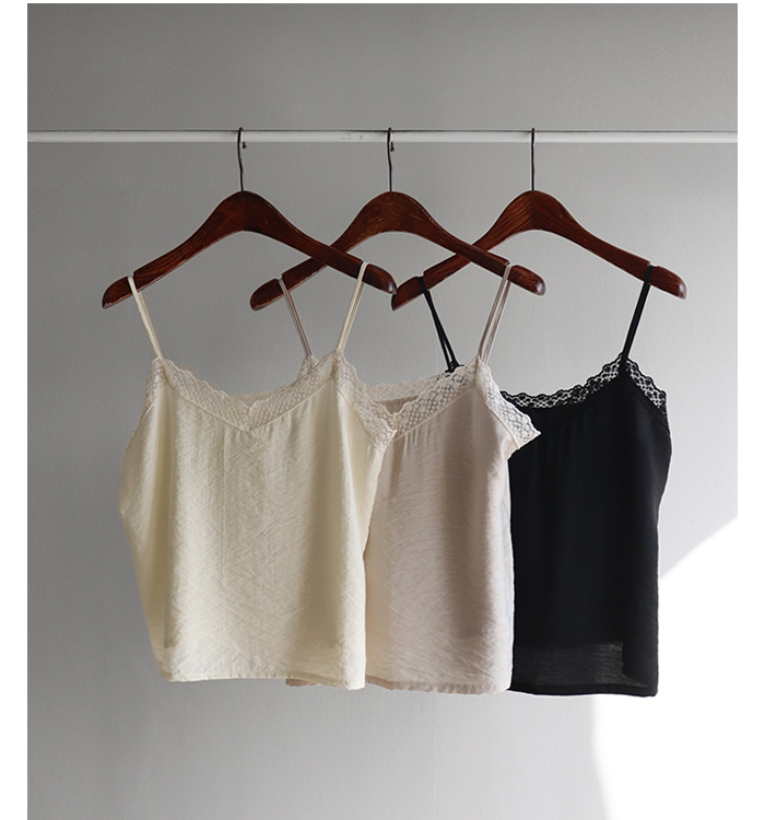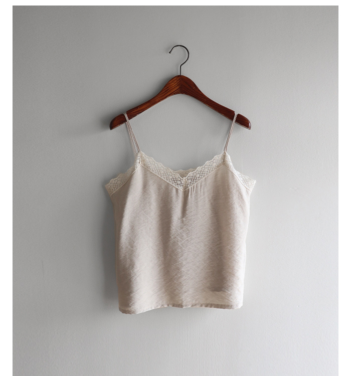 브이넥 라인과 섬세한 플라워 레이스 디테일로