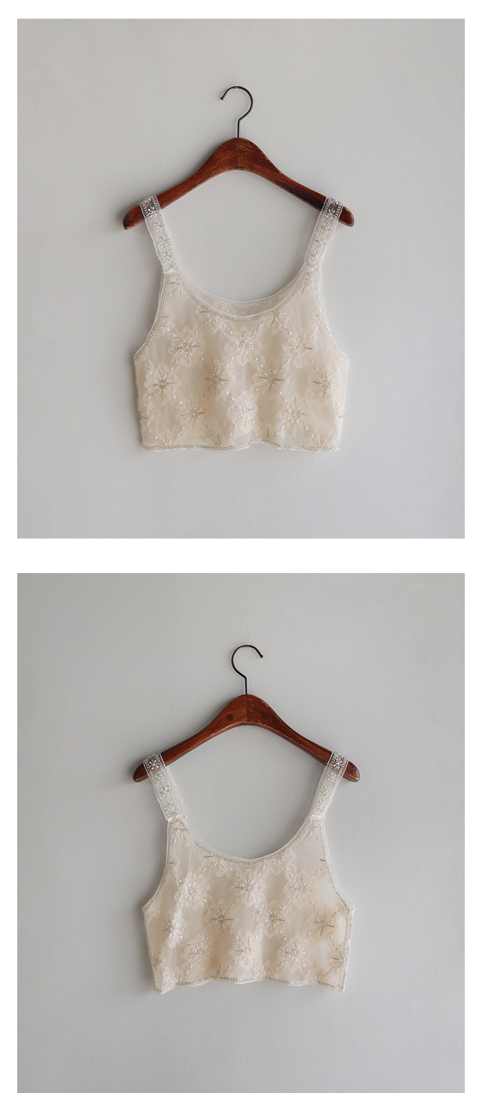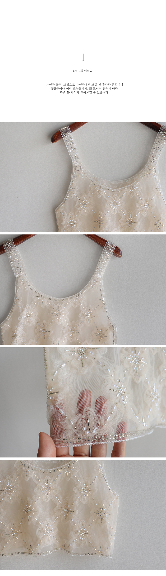 입체적 플라워 자수와 비즈 디테일이 돋보이는