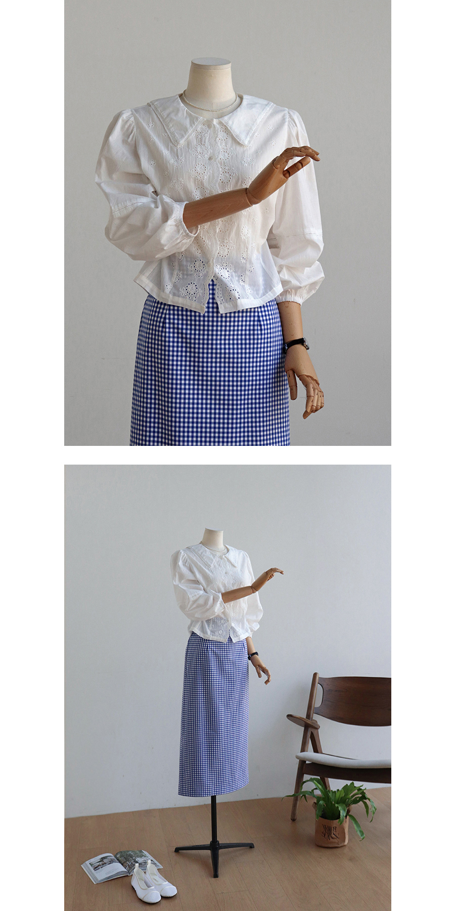 여성스러운 무드의 체크 스커트에요~