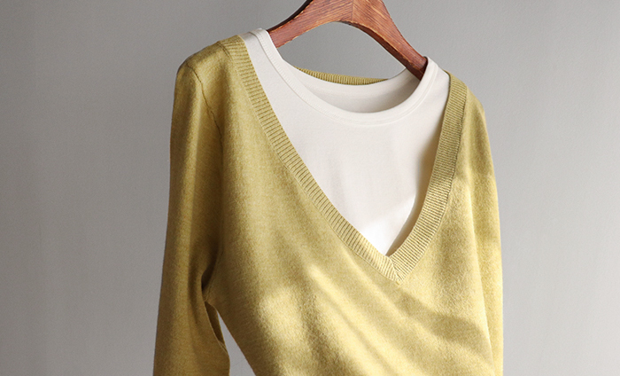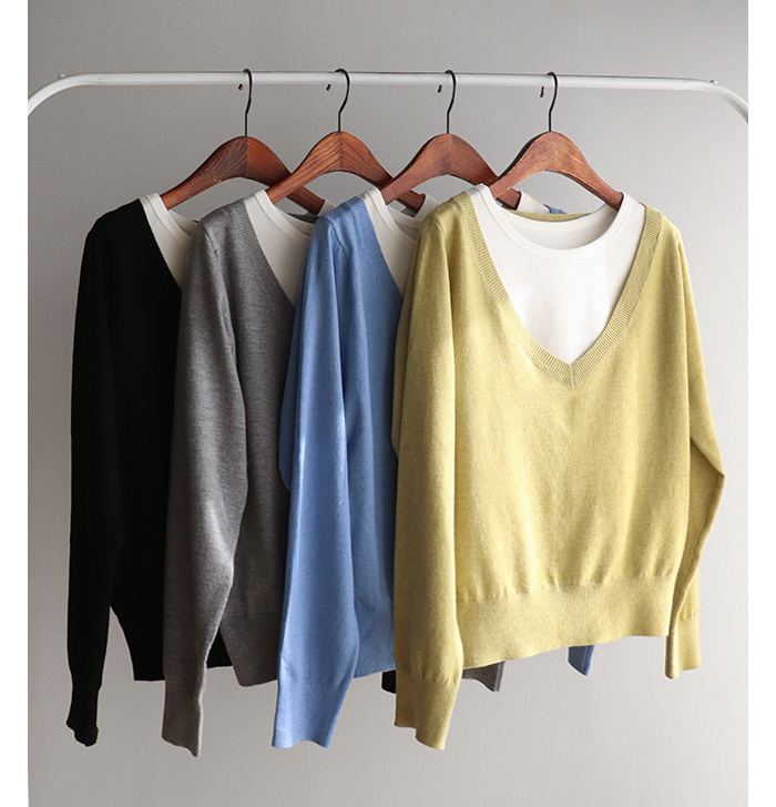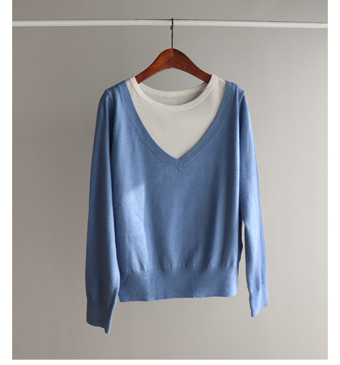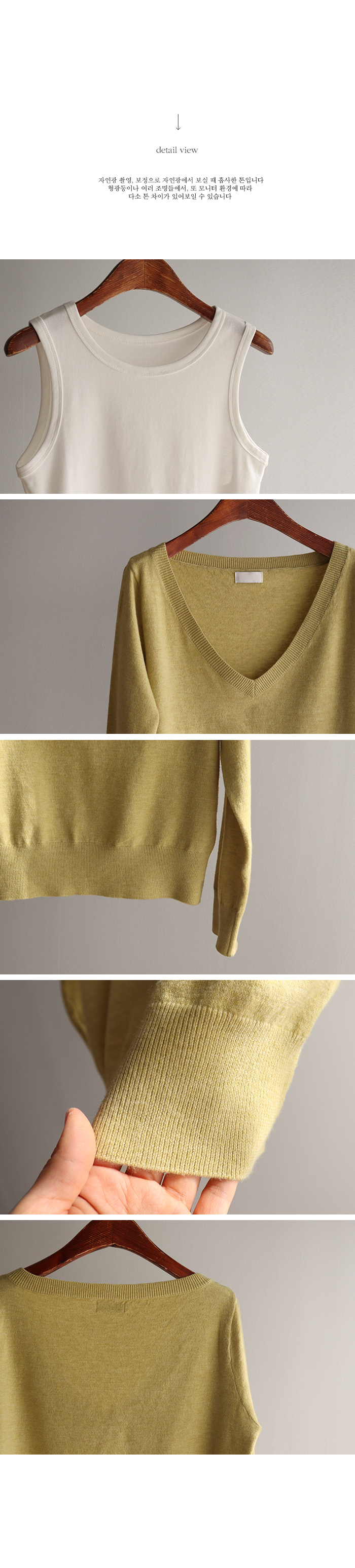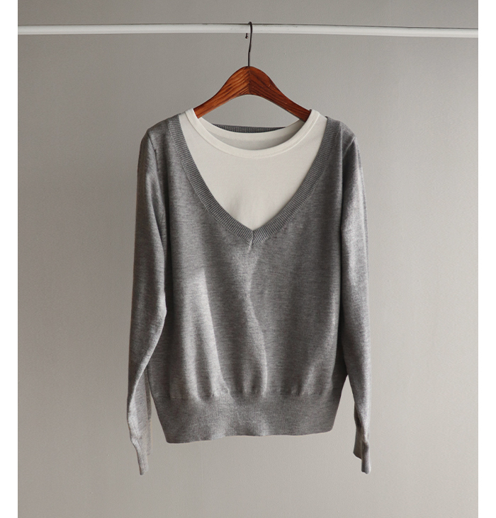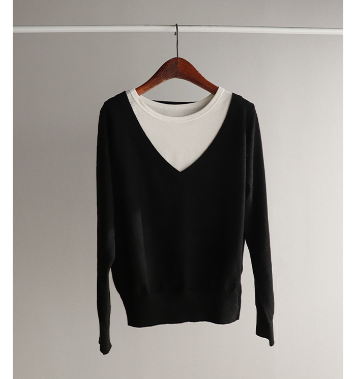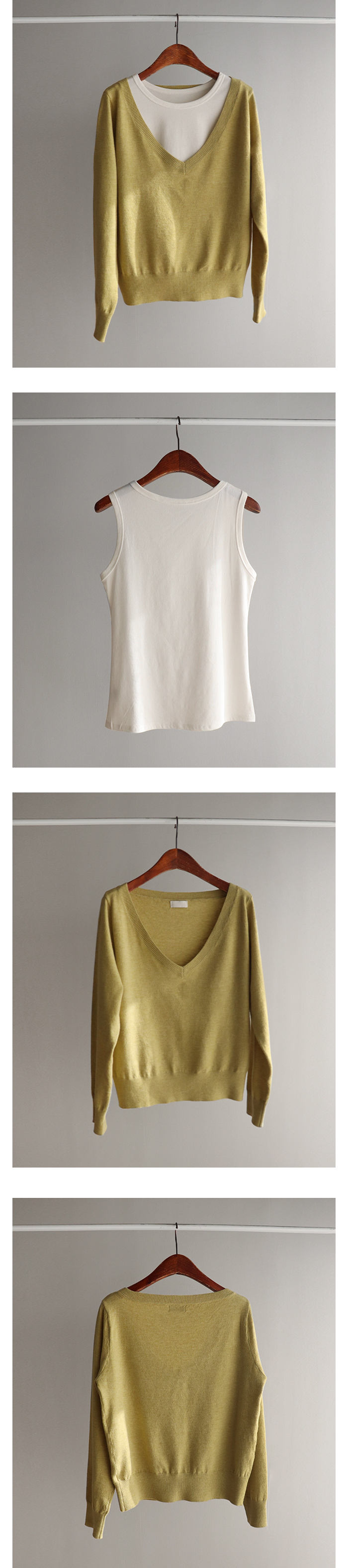 브이넥 니트 디자인에 이너 슬리브리스로