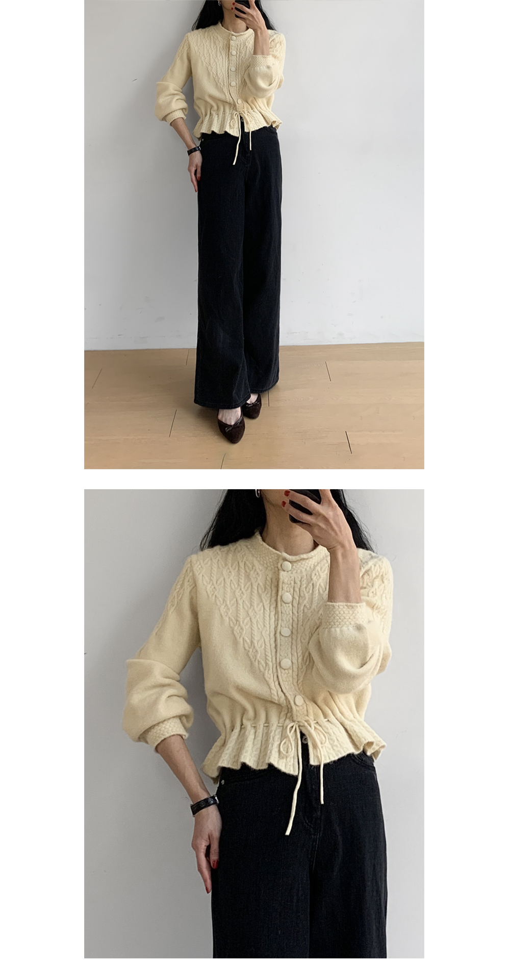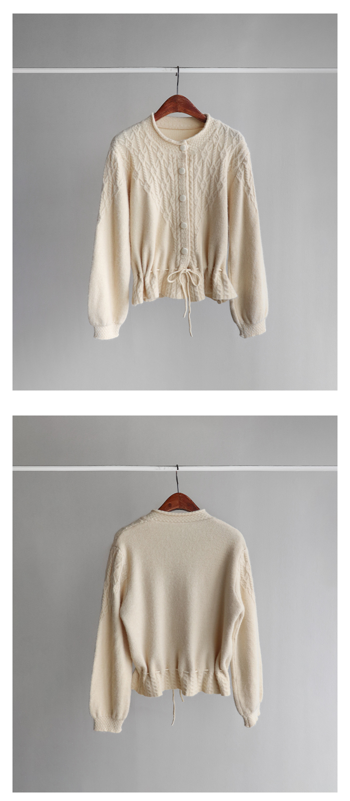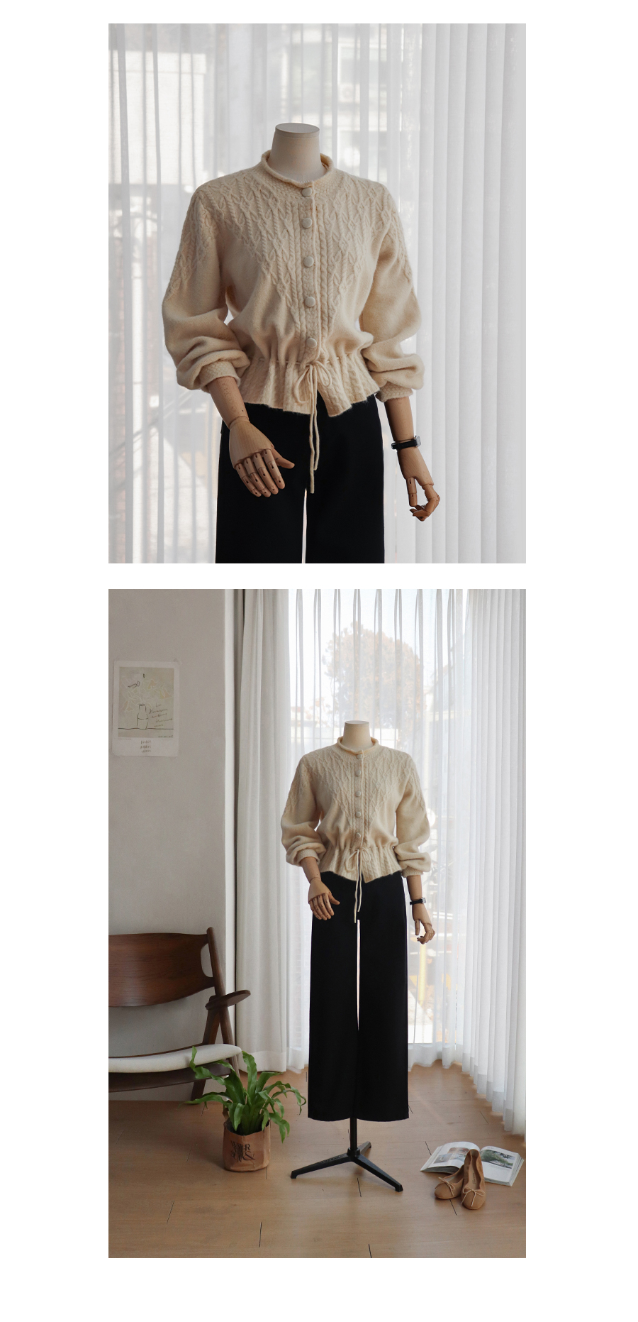 자연스럽게 잘록한 핏을 연출해 주는 가디건이에요