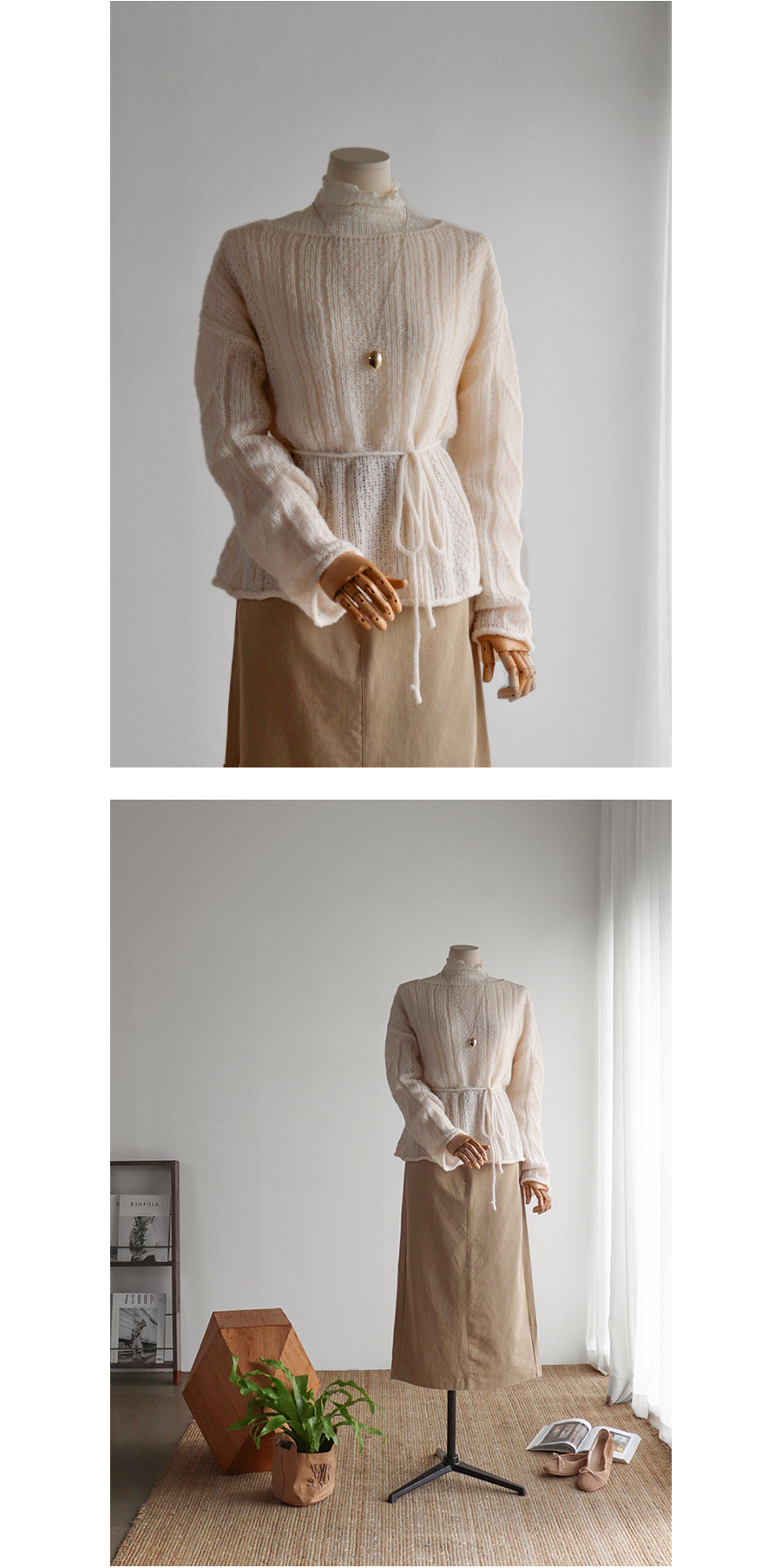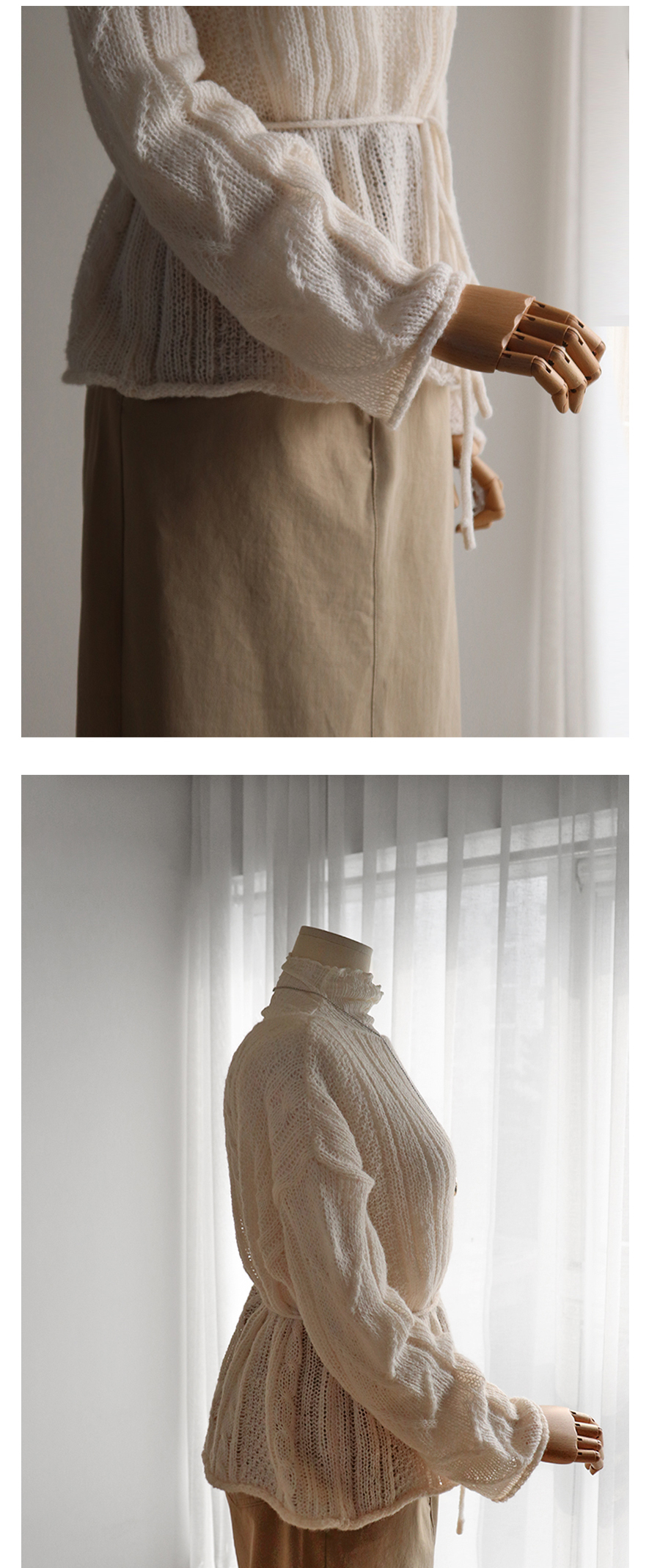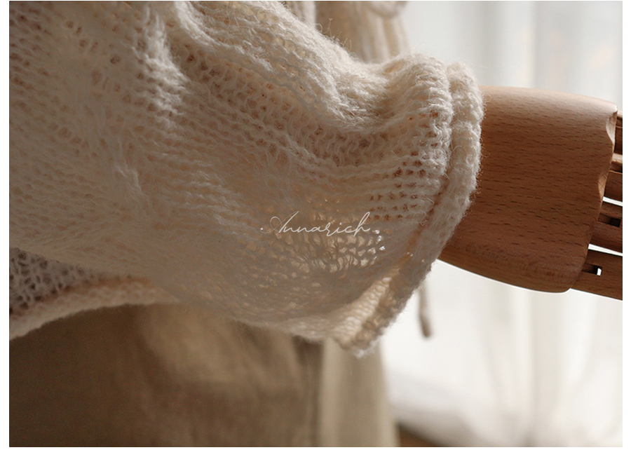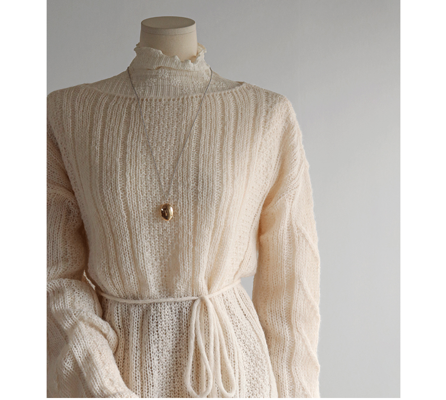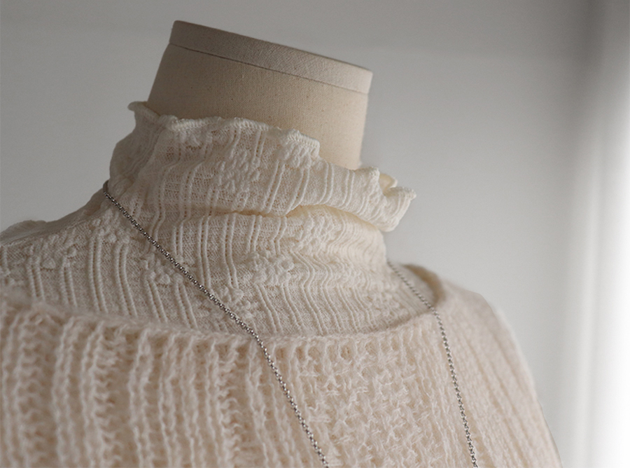 넥 라인과 숄더라인을 여리~하게 연출해 주는 니트에요