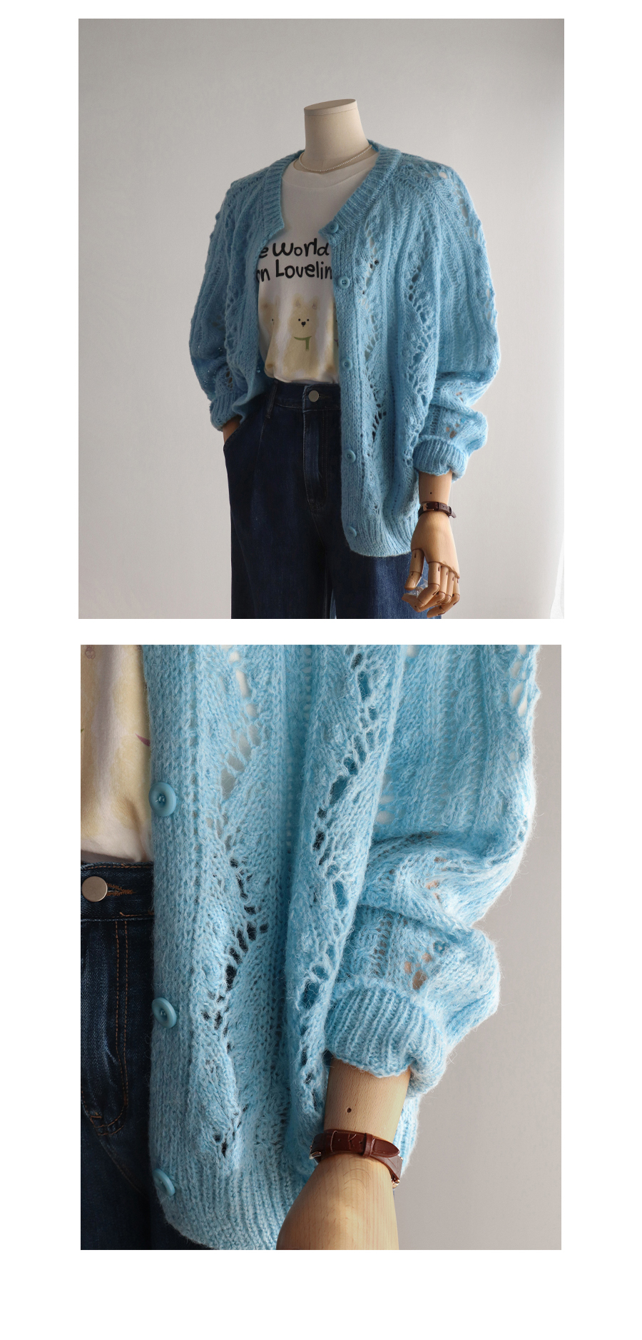성글한 짜임의 스카시 가디건이에요~
