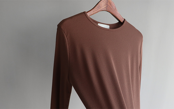 단정하게 떨어지는 라운드 넥 디자인으로