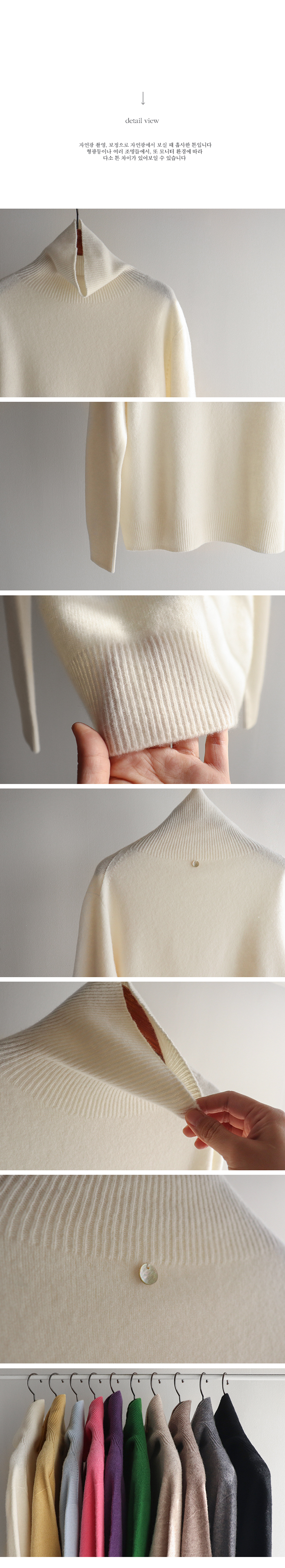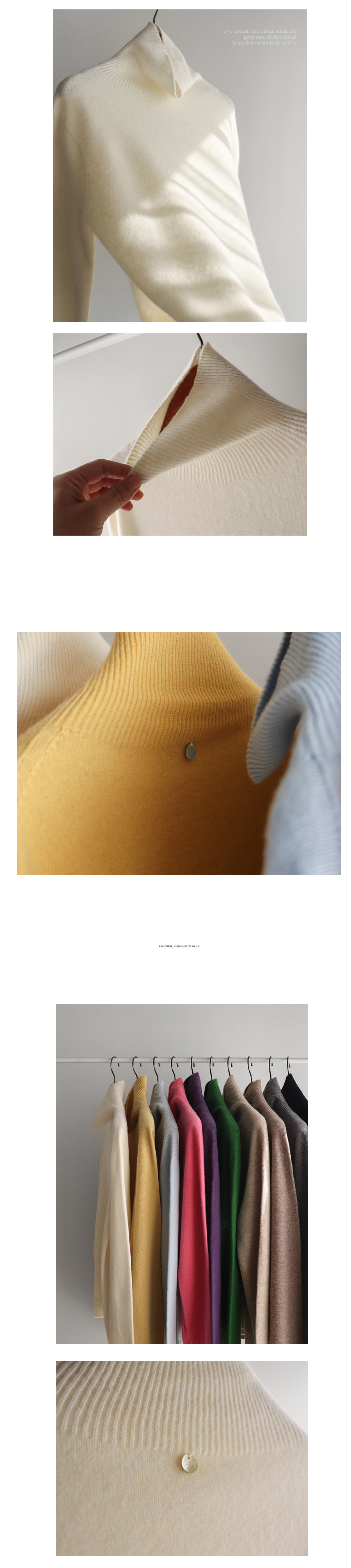 폴라 넥은 쫀쫀하고 유연한 골지짜임이라