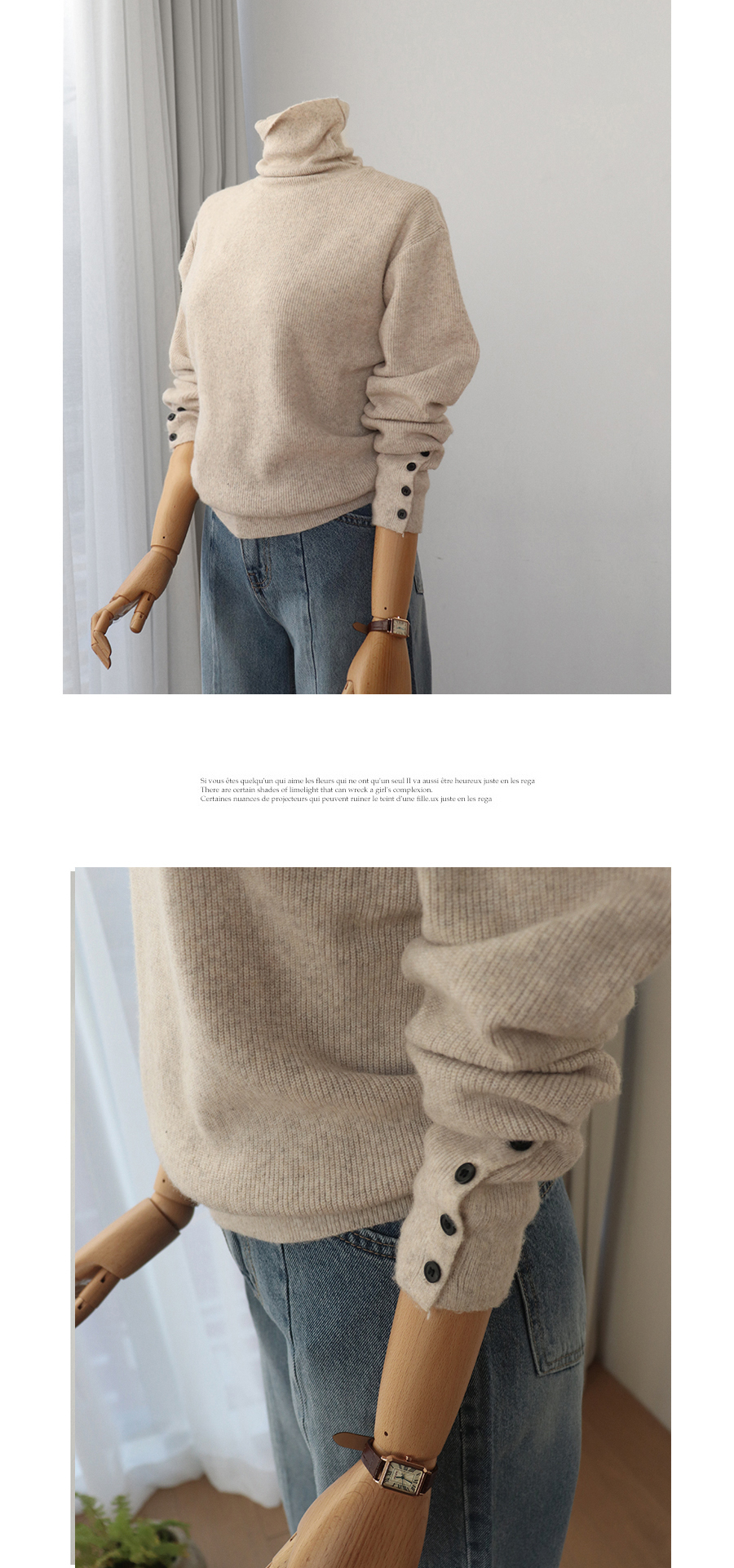 소맷단에는 4버튼 디테일을 더해