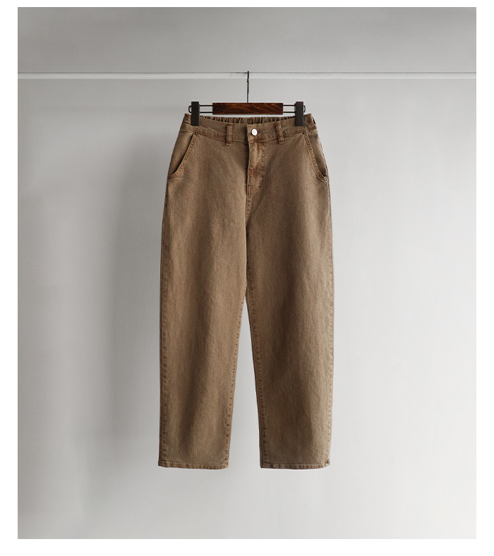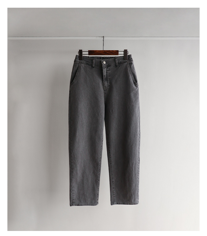 [어디에나 잘 어울리는 부담없는 세미배기핏 팬츠] [여유있는 핏으로 자연스러운 하체라인 커버 쏙-] [신축성 좋은 소재감과 허리 뒷밴딩으로 더 편안하게] [슬럽 텍스처&다잉 워싱감으로 멋스러운 무드]