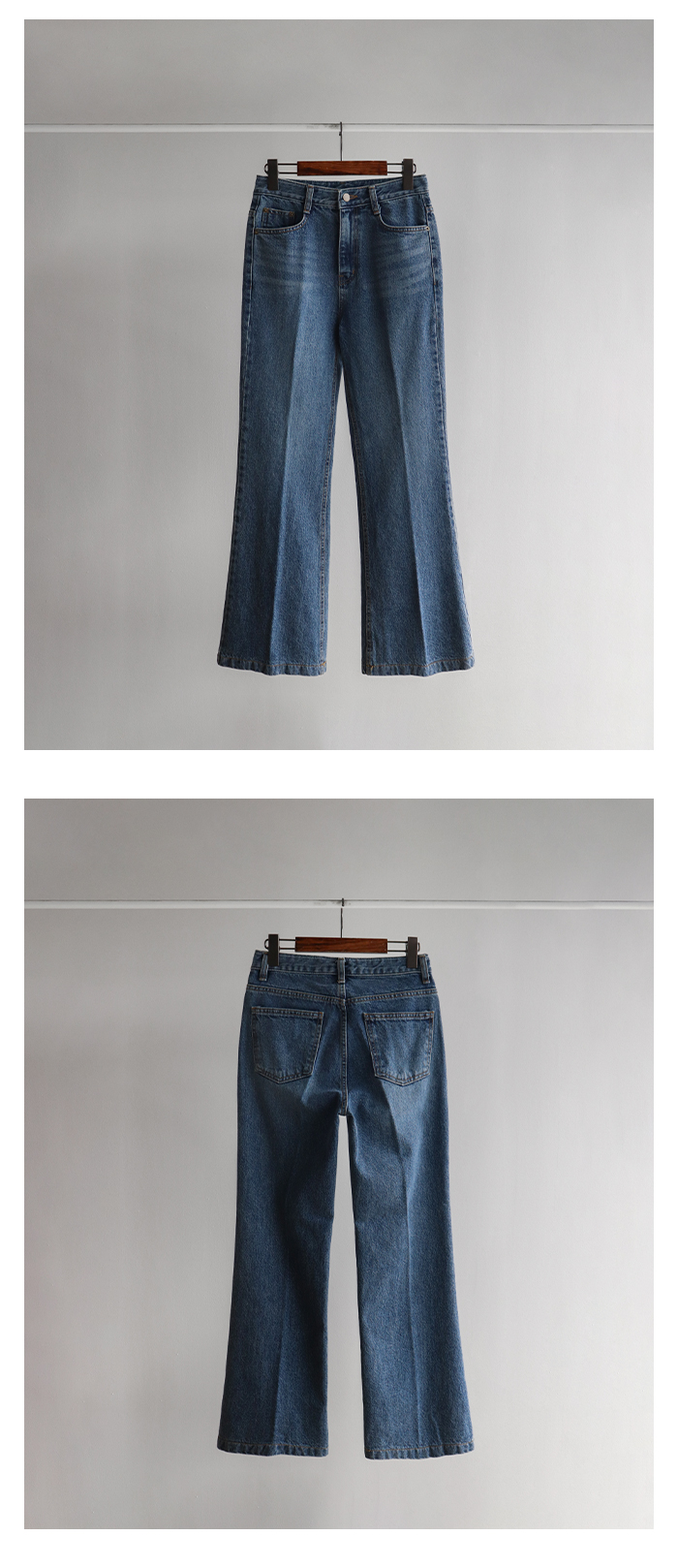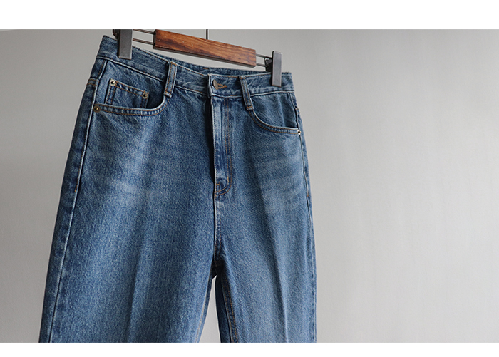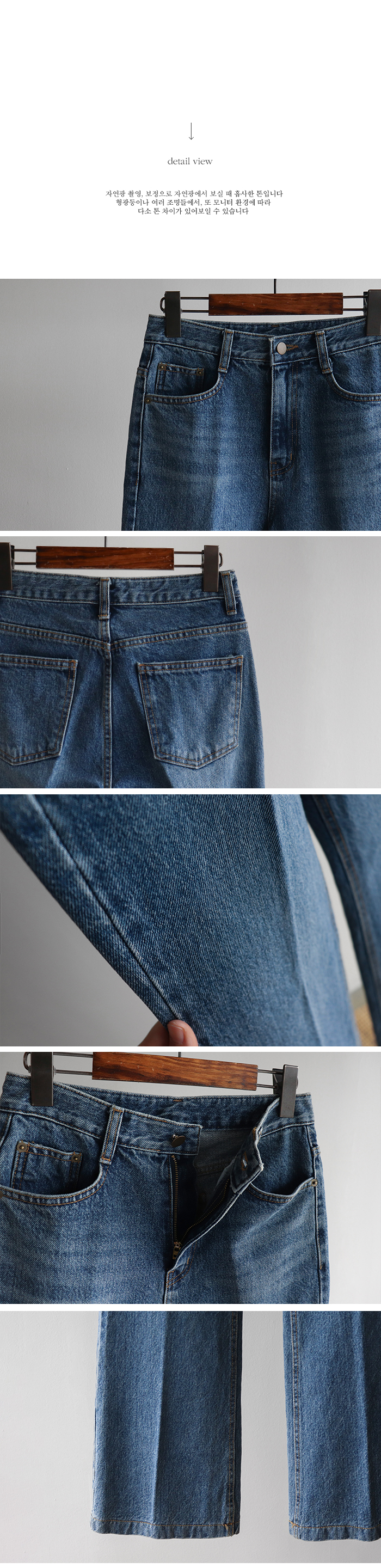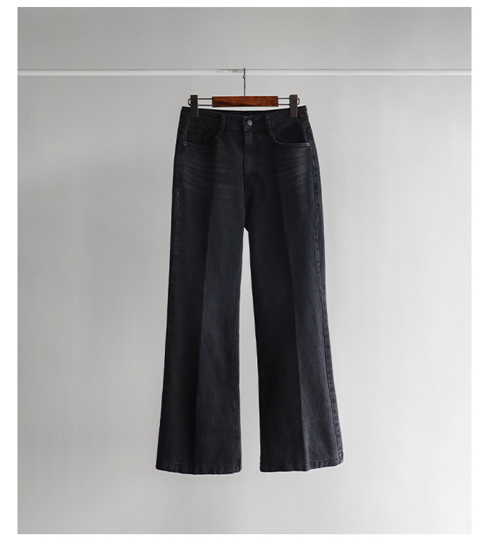 [여성스럽고 세련된 아웃핏이 돋보이는 부츠컷 라인] [레직기 주름 디테일로 더 길어 보이는 레그라인 핏 연출] [내츄럴한 워싱감까지 멋스럽게 표현되는 데님PT] [핏 무너짐없이 표현될 탄탄한 코튼100% 소재감]