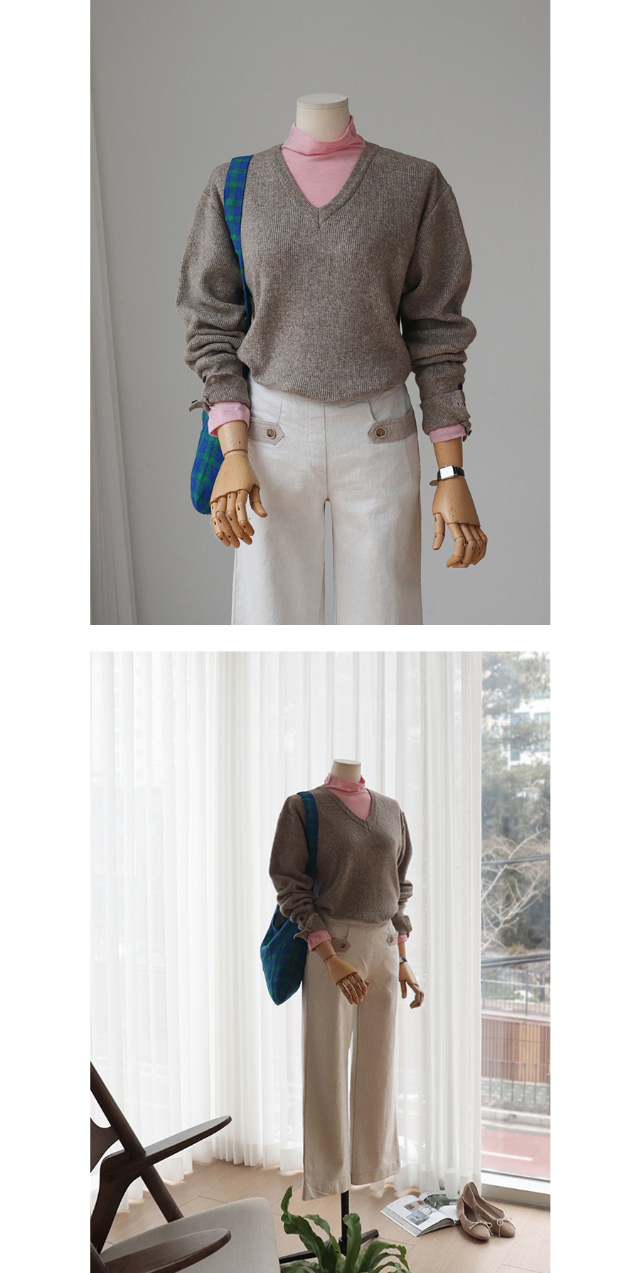 심플함 속에 포인트를 살려주는 니트,