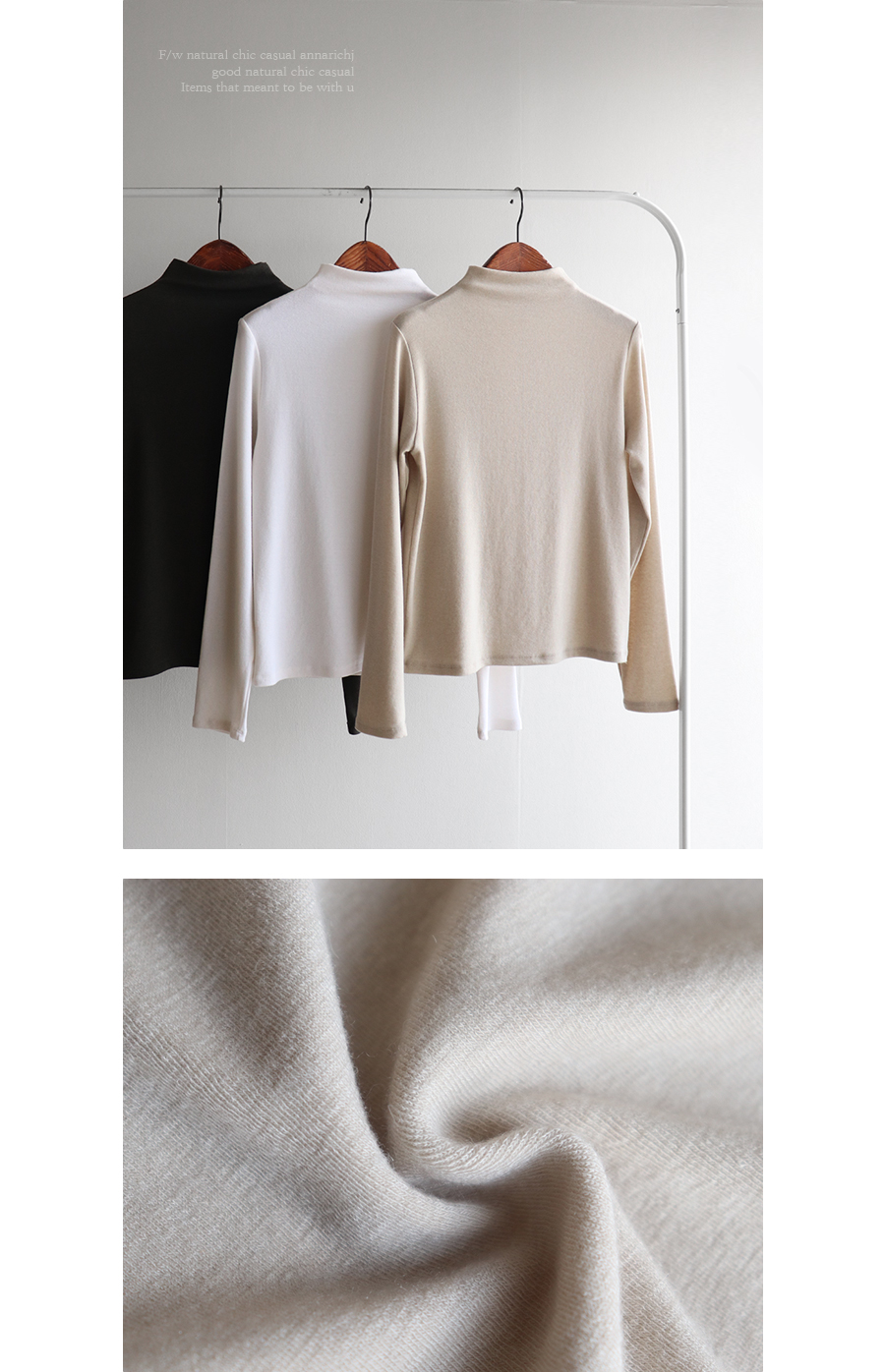 부드럽고 따듯한 착용감이 느껴지는 반 폴라 티셔츠,