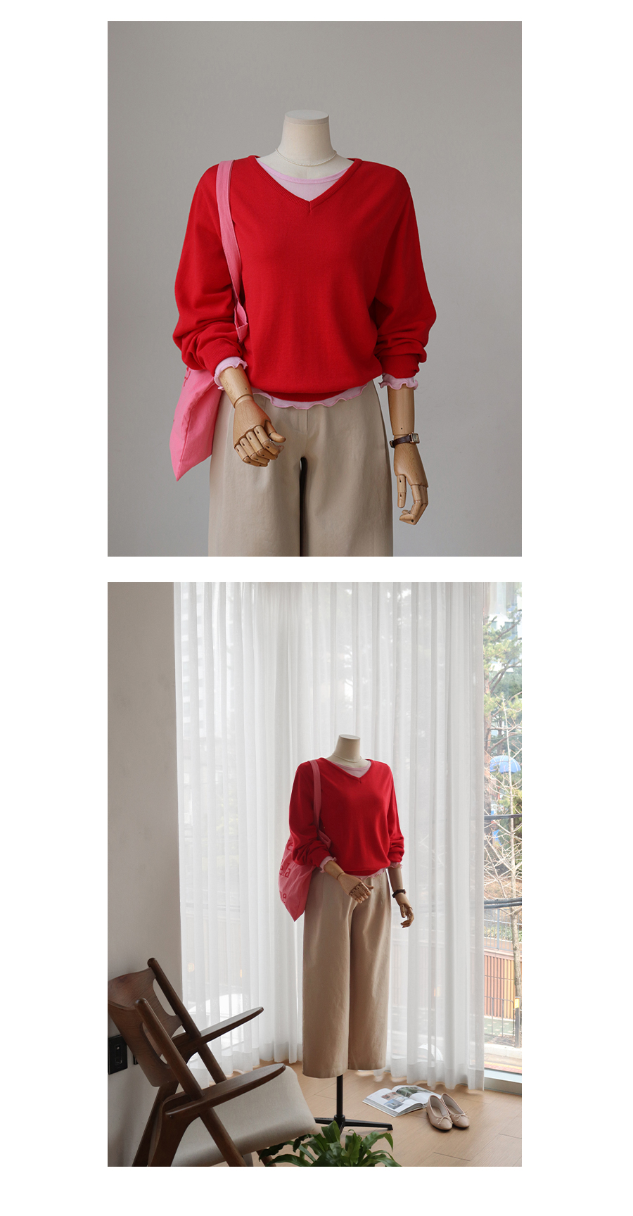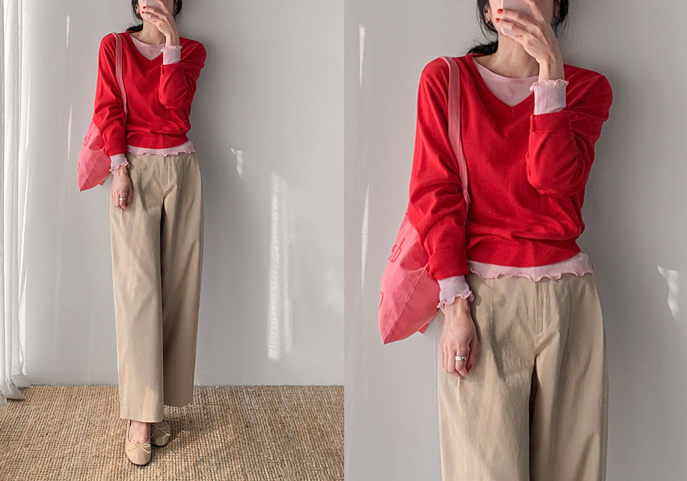 데일리로 활용도 높은 브이넥 니트,