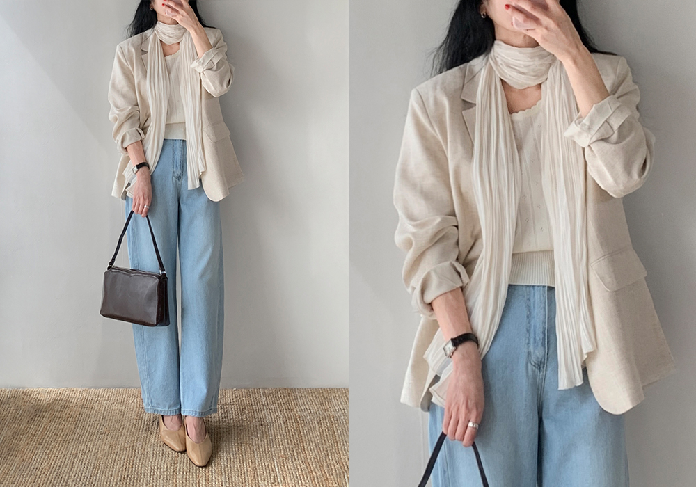 베이직한 무드의 린넨 자켓이에요~